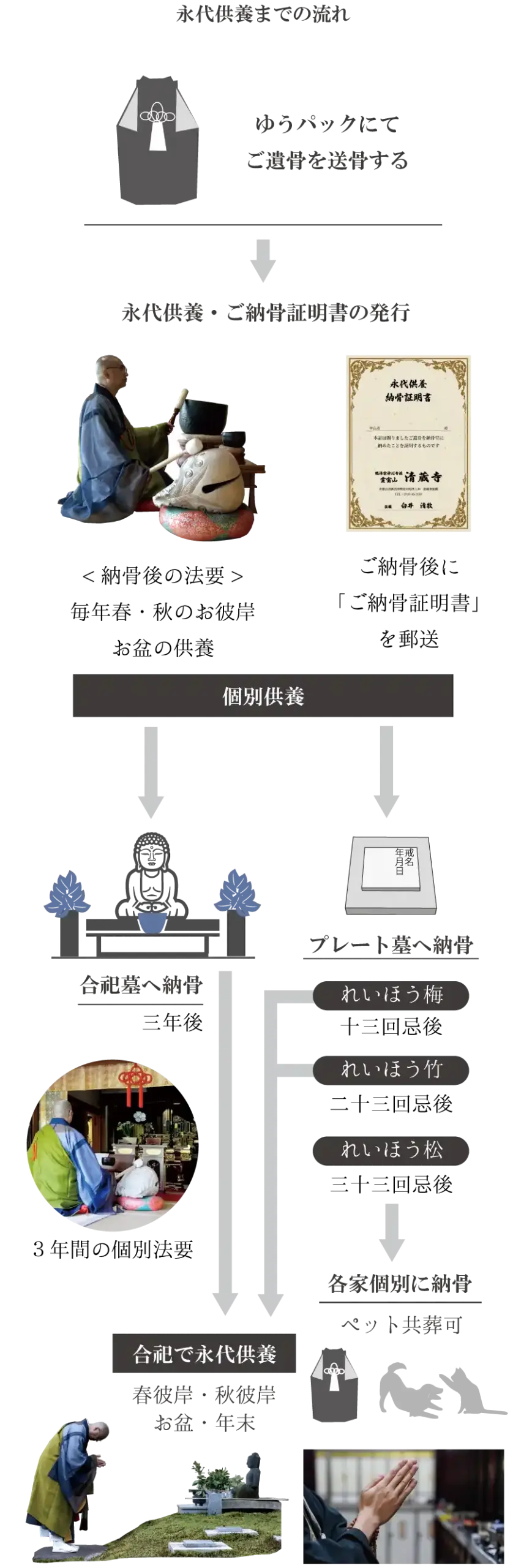 A. 供養は臨済宗 妙心寺派のお寺として、仏式で執り行うことを予めご了承ください。すでに菩提寺がある方は、菩提寺の住職にご了解の上お申し込みください。