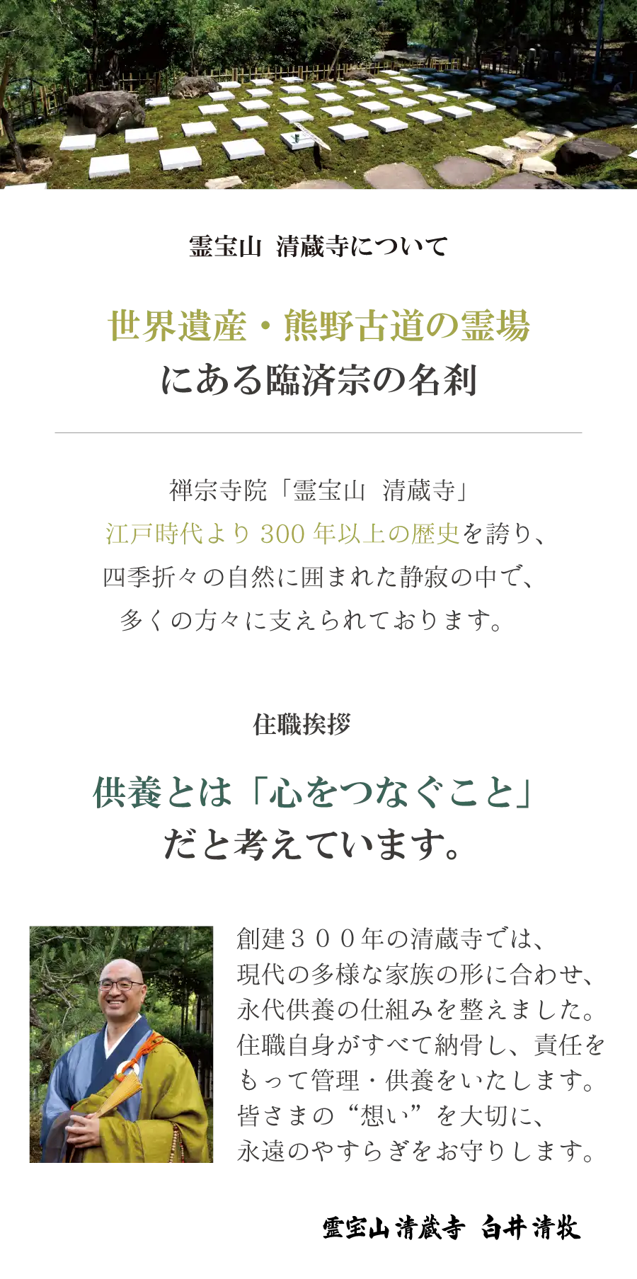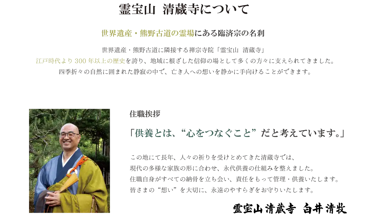 清蔵寺では、ひとつひとつのご遺骨に対して、長年 生きてこられた方の姿を重ねております。ご遺骨をただの亡骸としてではなく、「その人が生きている」というような気持ちで接しております。そして、皆様が自分の父母を想う心と同じような気持ちで、覚悟を持って供養しております。