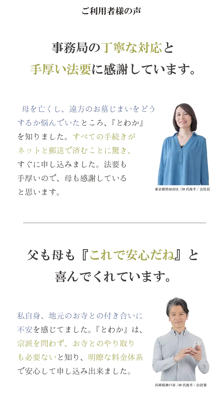 「永代供養‐永遠華(とわか)‐について問合せたい」とお伝えください。